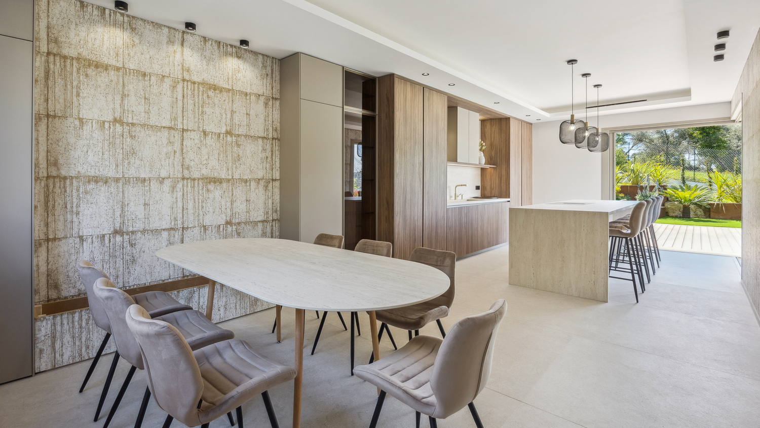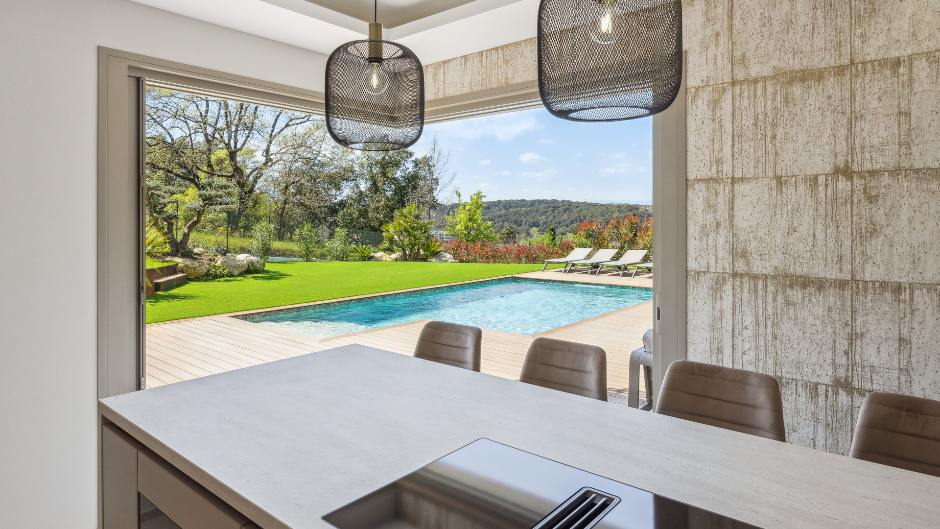 This fully custom-made kitchen was designed and created by La Maison Carreau Concept: from the tiles to the worktop, including taps, facades and finishes. Each texture and material has been carefully selected to create a harmonious and unique whole.
