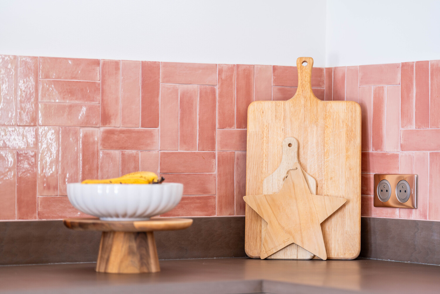 A very beautiful tile signed La Maison by Carreau Concept elegantly dresses this kitchen and this shower. Every detail has been designed to enhance the space and bring style and harmony to the whole.