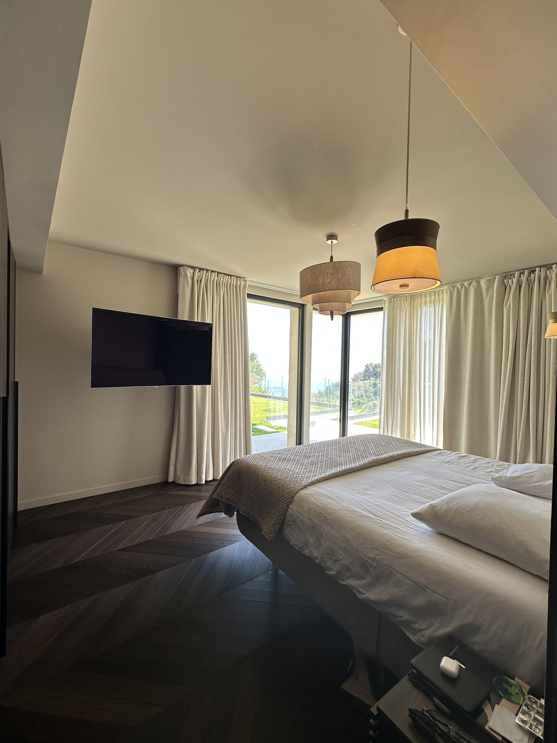 In this home, the parquet flooring adorns several bedrooms with elegance, bringing warmth, style, and harmony to each space.